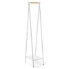 Praktyczny wieszak podłogowy na ubrania z dwoma półkami. Wymiary zewnętrzne wieszaka to 88 x 44 x 160 cm, co sprawia, że jest funkcjonalny i oszczędza miejsce.
